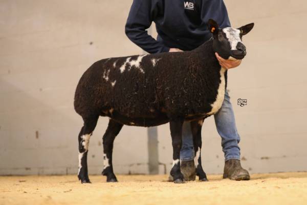 Strong interest surrounded a particular shearling ewe from S Gibbons, Whatmore flock, bred from two well-known names within the Dutch Spotted breed: Whatmore Forty Winx and Whatmore EllieMae. Whatmore Hairspray was scanned in lamb with twins to Tri-Lands High Tower, she made a major impact in the ring and was secured by J Radnor for 4000gns. Momentum continued for the Whatmore flock, with their remaining shearlings selling for 3800gns, 3500gns and 3200gns, underlining a highly successful day.