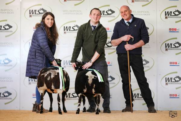 Will’s Champion was the 1st prize Ewe lamb Merryboro Gold Duster, from Tom & Lousie Nash of Haverfordwest, Pembrokeshire. Gold Duster, out of Imported Clover sired by McDermotts Fireman, sold for 3700gns to Sebastian Ghiorghita of Wellingborough, Northants.