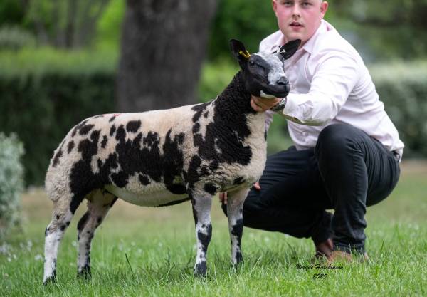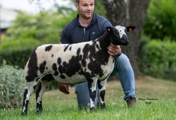 Topping the trade first was Lot 44, a standout weaned ram lamb from the Milltown Flock – Milltown Iron Man (ET). Sired by Drumhard Harrison and out of Diamond Felicity, this powerful lamb made the journey from Northern Ireland a rewarding one for the breeder.