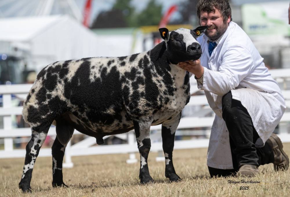 The 2025 Dutch Spotted Sheep National Show was held at the prestigious Great Yorkshire Show, drawing a strong and competitive entry from across the UK. Judge Mr Jonathan Marshall of the Struie Flock took to the centre of the ring and demonstrated his clear vision and type throughout his days judging. Jonathan commented “It was an honour and a privilege to judge the Dutch Spotted National Show at the Great Yorkshire Show. A superb turnout of stock across the classes, all of which are a credit to their breeders and exhibitors. The ewe lamb class in particular made for good judging due to the consistency of the animals at the show”.